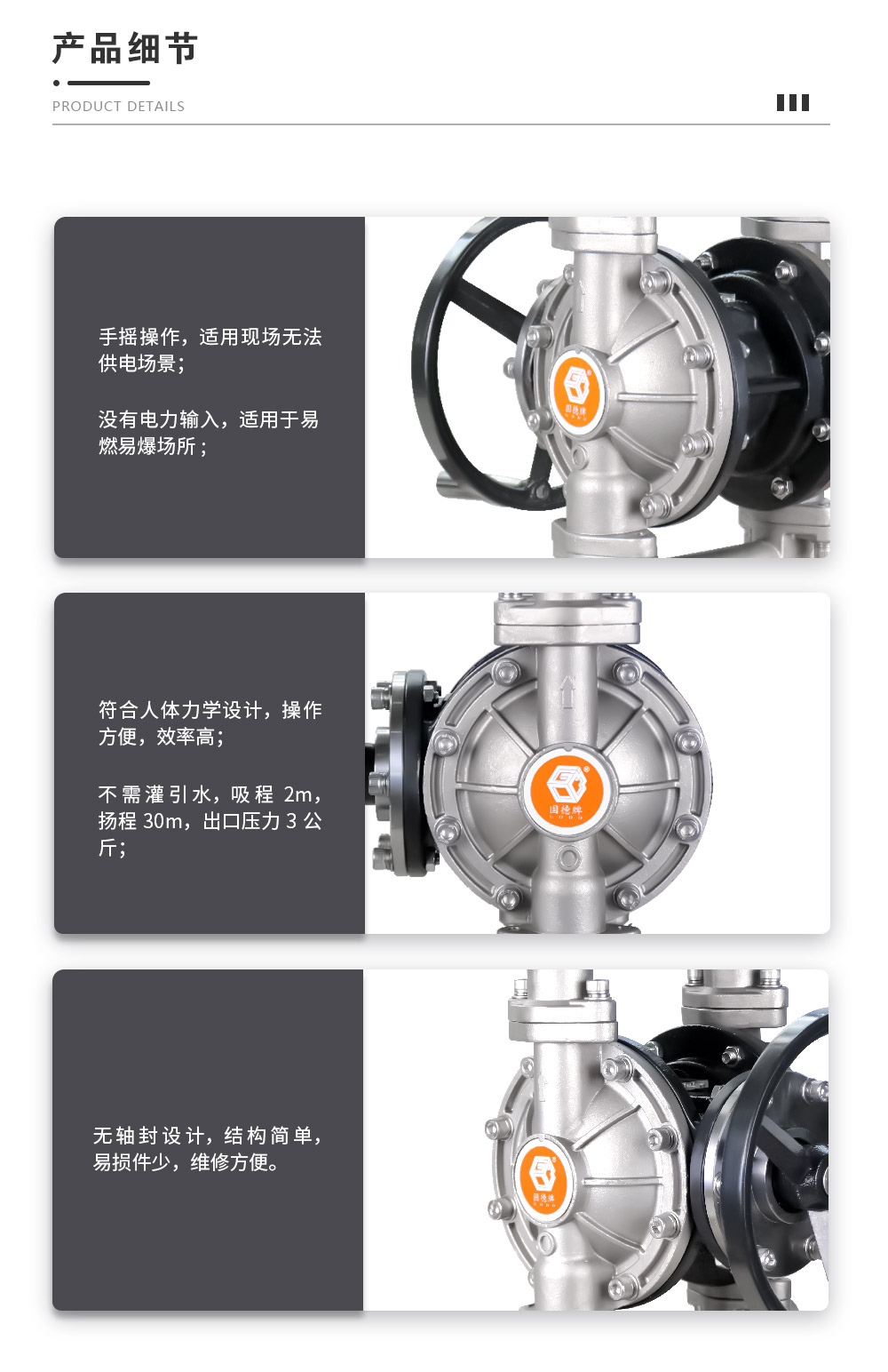 手搖隔膜泵,與傳統(tǒng)水泵具有良好的通用性和互換性,擁有寬泛的材質(zhì)、口徑選型空間